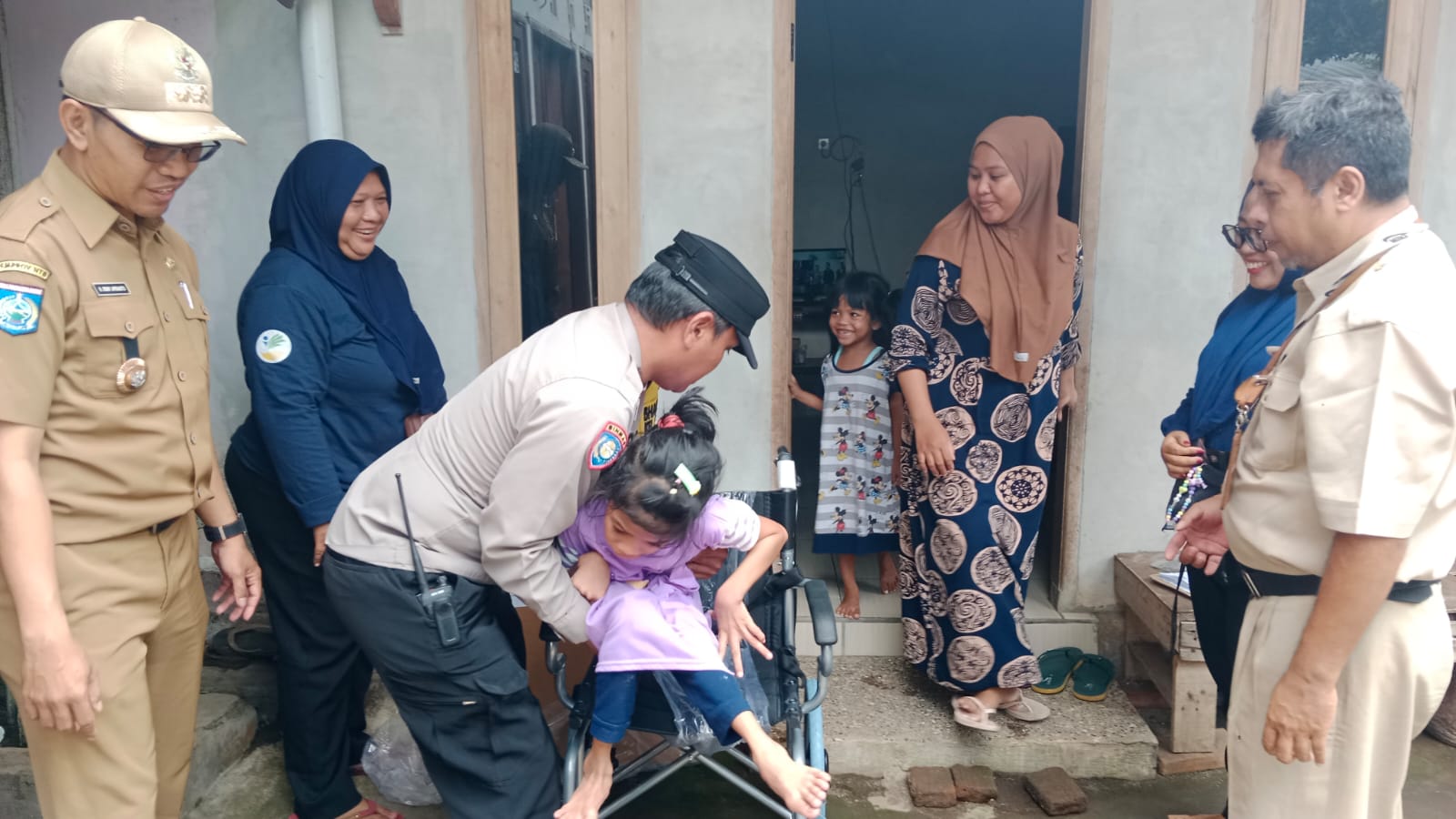 Mataram NTB – Bhabinkamtibmas Kelurahan Sayang-sayang Polsek Sandubaya Polres Mataram, Aipda Suherjan, bersama Lurah dan Kasi Kesos Kelurahan Sayang-sayang, menyalurkan bantuan sosial dari Dinas Sosial (Dinsos) Kota Mataram berupa dua unit kursi roda dan satu pasang tongkat. Bantuan tersebut diberikan kepada warga penyandang disabilitas di Lingkungan Sayang Lauk, Kramat Nunggal, dan Lendang Re, Kelurahan Sayang-sayang, Selasa (30/9).
