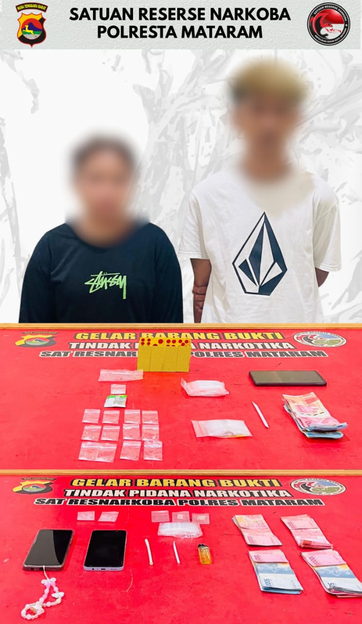 Mataram, NTB – Tim Opsnal Satresnarkoba Polresta Mataram kembali menggagalkan peredaran Narkotika di wilayah Kota Mataram. Kali ini, dua terduga pelaku asal Karang Bagu, Kecamatan Cakranegara, masing-masing PP (19) dan YES (29), harus berurusan dengan hukum usai diamankan petugas, Minggu dini hari (05/10/2025).
