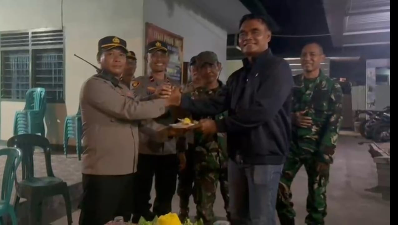 Mataram NTB – Wujud sinergitas yang solid dengan TNI jajaran Koramil 1606-05/Mataram, Polsek Mataram dan Polsek Selaparang memberikan Surprise dan ucapan Selamat Kepada TNI di Koramil Mataram tepat pada HUT TNI ke-80, Minggu dini hari (05/10/2025).