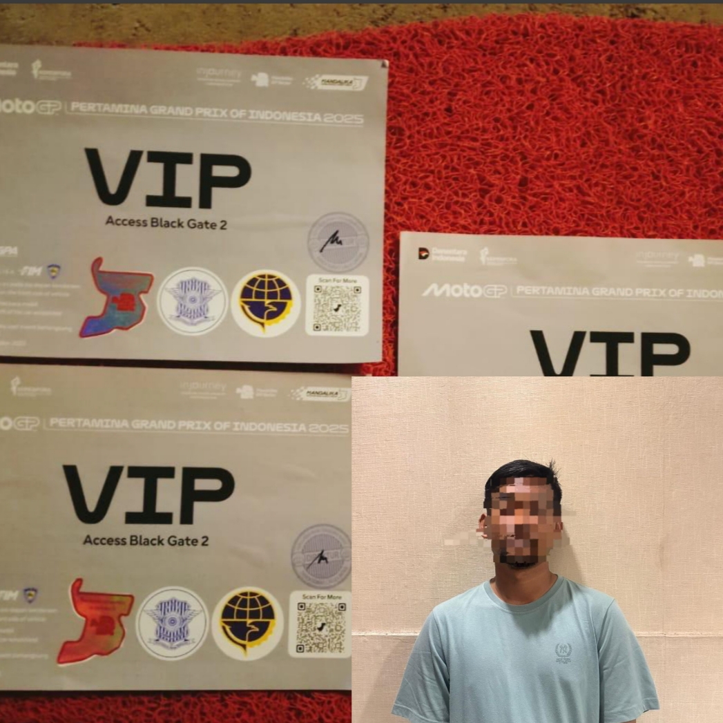 Mataram, NTB – Gelaran MotoGP Indonesia 2025 di Sirkuit Mandalika ternyata dimanfaatkan oleh oknum tertentu untuk mencari keuntungan dengan cara ilegal. Seorang pria berinisial MSU (34), asal Jawa dan berdomisili di Lombok Tengah, ditangkap Tim Resmob dan Unit Tipidter Satreskrim Polresta Mataram karena diduga memalsukan puluhan stiker kendaraan VIP “Indonesia GP 2025” atau Car Pass VIP Indonesia GP 2025.