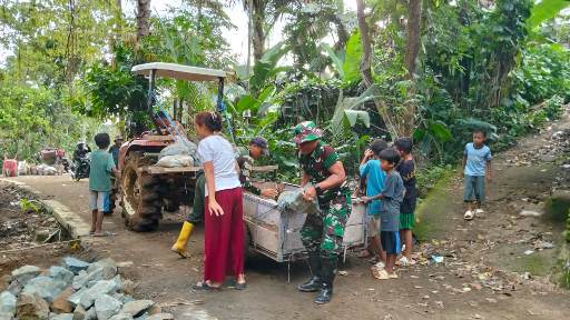 Lombok Barat, NTB – Suasana siang di Dusun Sayang, Desa Giri Madia, Kecamatan Lingsar, Lombok Barat, tampak berbeda. Beberapa anak terlihat antusias menurunkan batu dari traktor modifikasi didampingi orang tuanya. Mereka dengan penuh semangat ikut membantu anggota Satuan Tugas (Satgas) TNI Manunggal Membangun Desa (TMMD) ke-126 Komando Distrik Militer (Kodim) 1606/Mataram yang tengah melakukan pengerjaan penaludan dan membuka akses jalan penghubung di desa mereka, Kamis (16/10/2025).