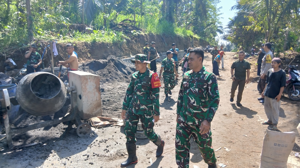 Kehadiran Dandim di lokasi TMMD menjadi motivasi bagi para personel dan warga untuk terus menyelesaikan pembangunan tepat waktu, sebagai bukti nyata kemanunggalan TNI dengan rakyat. (Pendim 1606)