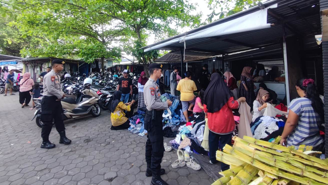 Patroli yang dilakukan sejak pagi ini menyasar sejumlah titik aktivitas masyarakat di sekitar pasar, mulai dari pedagang, juru parkir, hingga pemilik warung, untuk memberikan imbauan kamtibmas serta mengajak bersama-sama menjaga keamanan lingkungan.