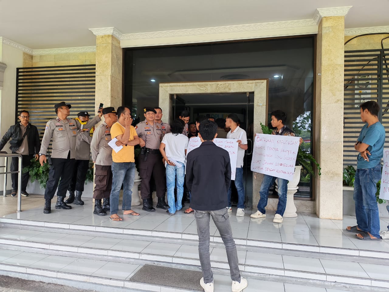 Aksi ini diikuti oleh sekitar 15 orang massa, yang dipimpin oleh Kordum Edi Putra dan Korlap Alfi Jufriadin dalam tuntutannya adanya pelanggaran dalam proses evaluasi tender dan meminta agar keputusan hasil tender dibatalkan.