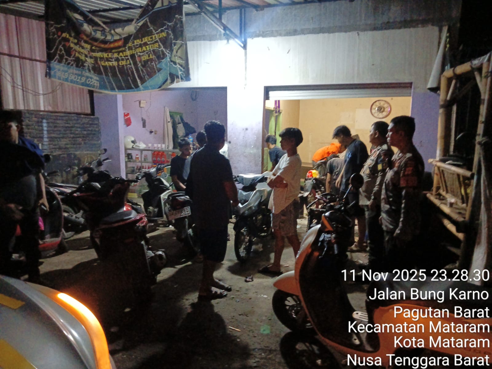 Mataram NTB – Patroli Polsek Mataram Polresta Mataram Polda NTB bersama Bhabinkamtibmas Kelurahan Pagutan Timur membubarkan sejumlah pemuda yang bergerombol di pinggir Jalan Lingkar Selatan, Kelurahan Pagutan Timur, Mataram. Rabu, (12/11/2025) dini hari sekitar pukul 00.10 Wita.