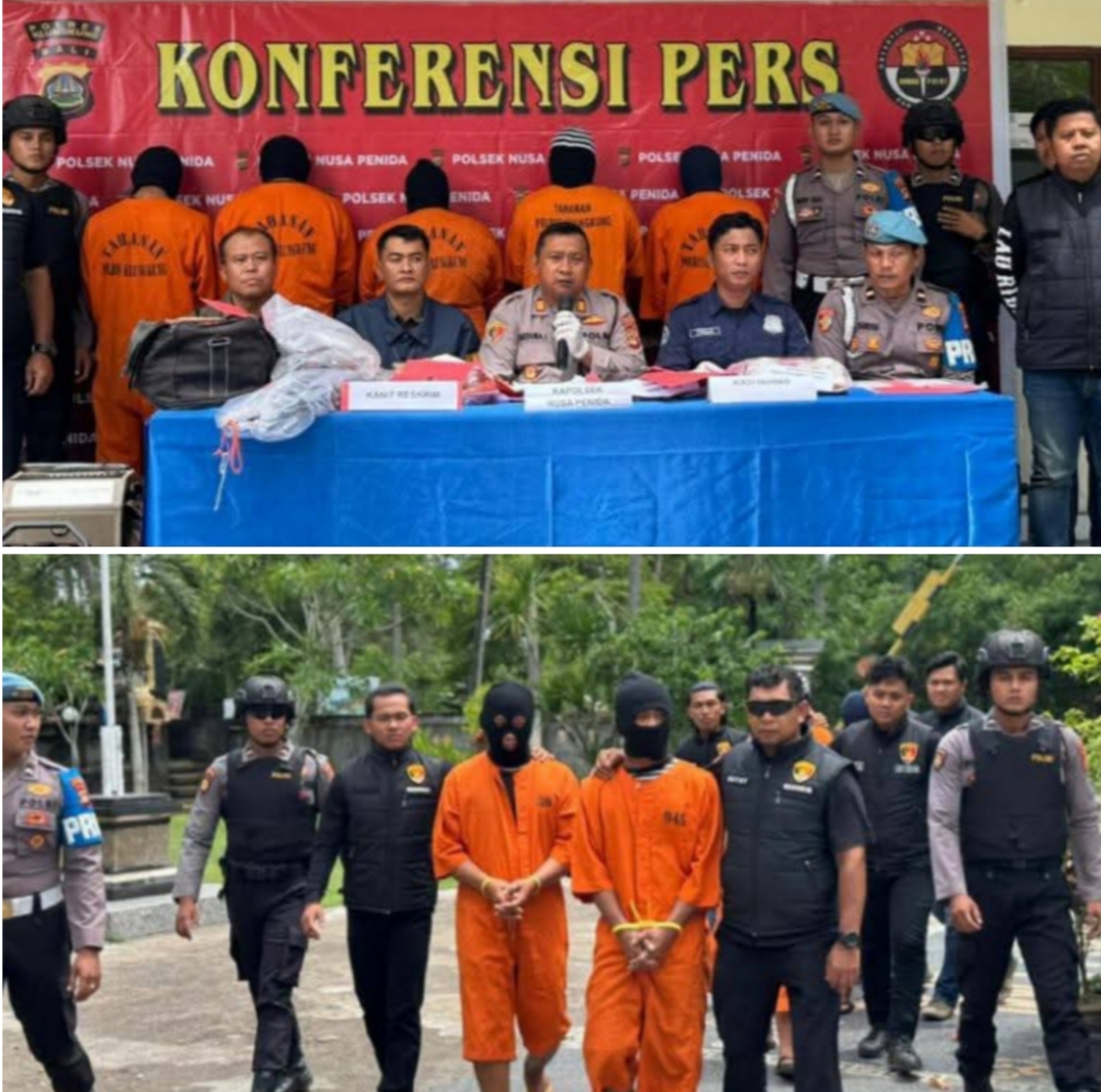 “Dalam konferensi pers ini, kami sampaikan bahwa empat kasus tindak pidana berhasil diungkap selama periode Oktober hingga November 2025, dengan total lima orang tersangka yang berhasil diamankan oleh Unit Reskrim Polsek Nusa Penida,” jelas AKP I Ketut Kesuma Jaya.