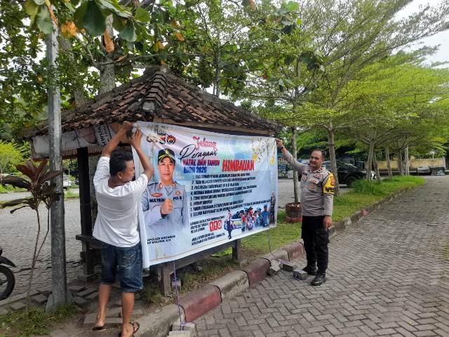 Mataram NTB – Menjelang puncak perayaan pergantian tahun, Polsek Mataram semakin intensif melakukan langkah preventif guna menjamin kondusivitas wilayah. Pada Senin (29/12/2025), personel Bhabinkamtibmas dikerahkan untuk memasang banner dan spanduk imbauan Kamtibmas di sejumlah titik strategis, mulai dari pemukiman padat penduduk hingga objek wisata.