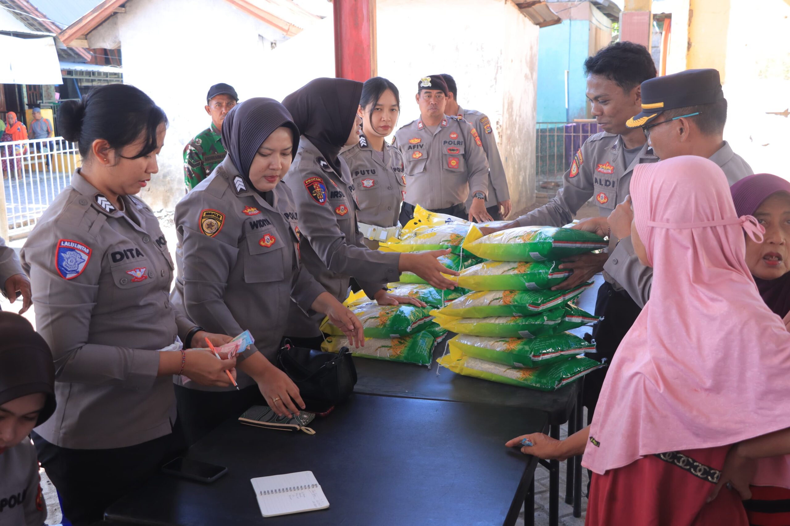 Kegiatan ini dipimpin langsung Kapolres Sumbawa Barat AKBP Zulkarnain, S.I.K., didampingi Wakapolres Kompol I. Nyoman Adi Kurniawan, S.H., serta dihadiri pejabat utama, Kapolsek Poto Tano, dan anggota Polres Sumbawa Barat. Kehadiran mereka disambut antusias warga, terbukti lebih dari 250 paket beras SPHP kemasan 5 kg ludes terjual.
