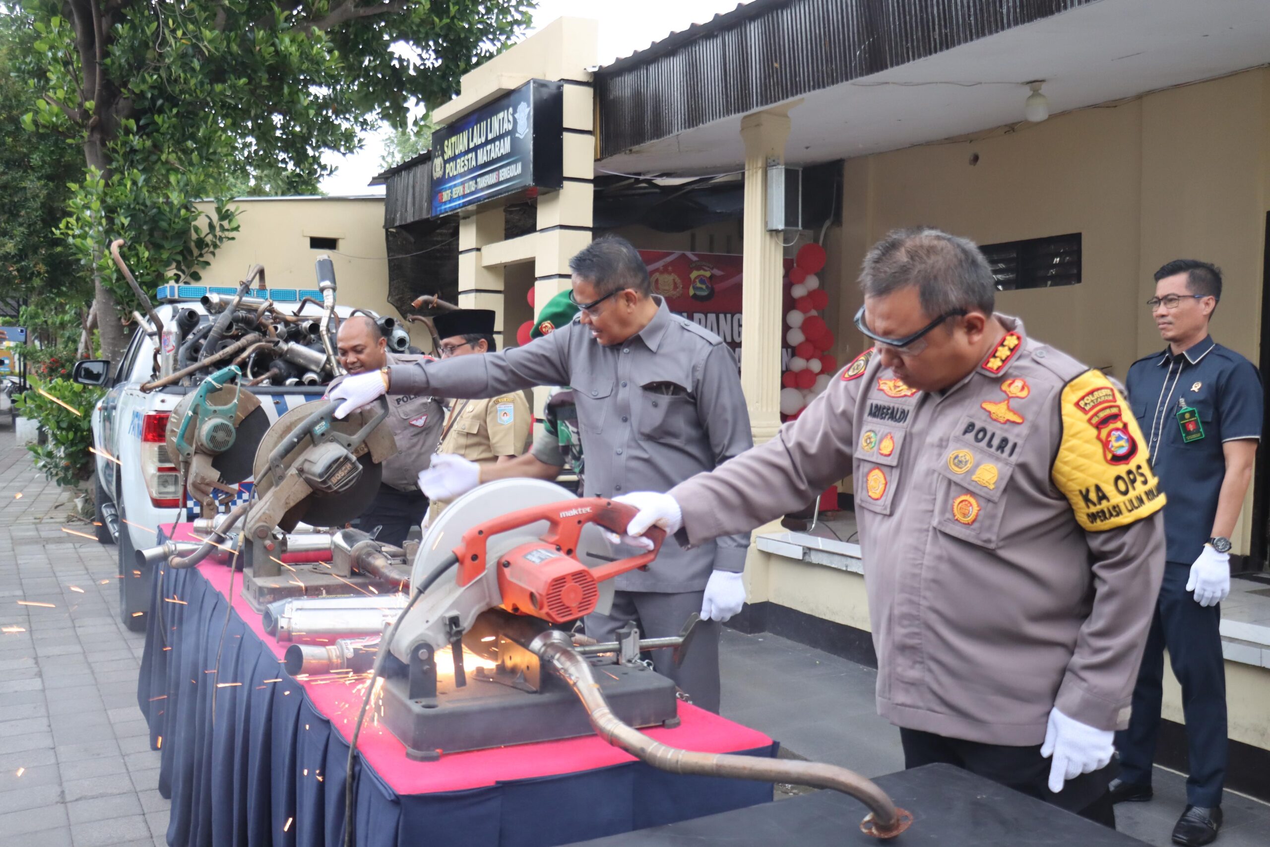 Suasana berlangsung khidmat saat prosesi dimulai dengan pemotongan simbolis knalpot oleh Kapolresta Mataram bersama Asisten 1 Kota Mataram, Ketua DPRD, dan Dandim 1606/Mataram, yang kemudian diikuti oleh tamu undangan lainnya. Ribuan knalpot brong ini merupakan hasil kegiatan rutin yang ditingkatkan (KRYD) oleh Satlantas Polresta Mataram selama setahun terakhir.